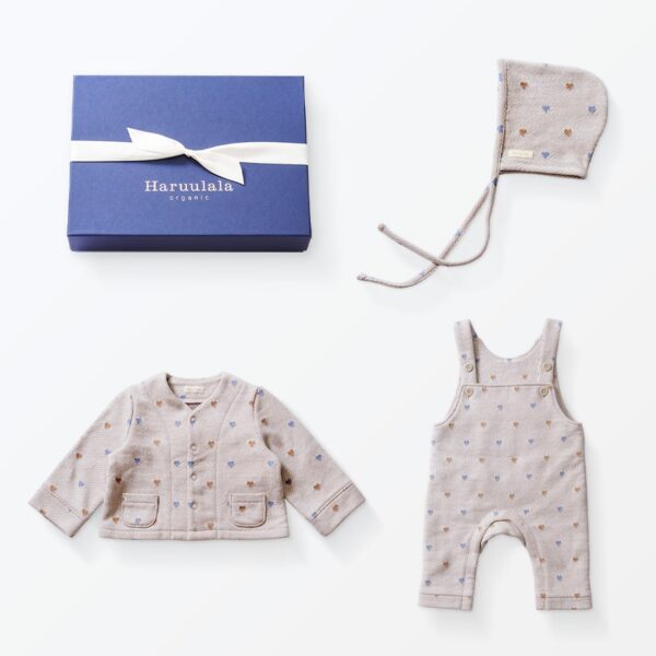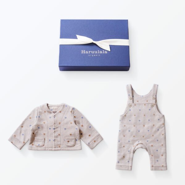 出産祝い2点セット(ハートジャカードサロペット・カーディガン)