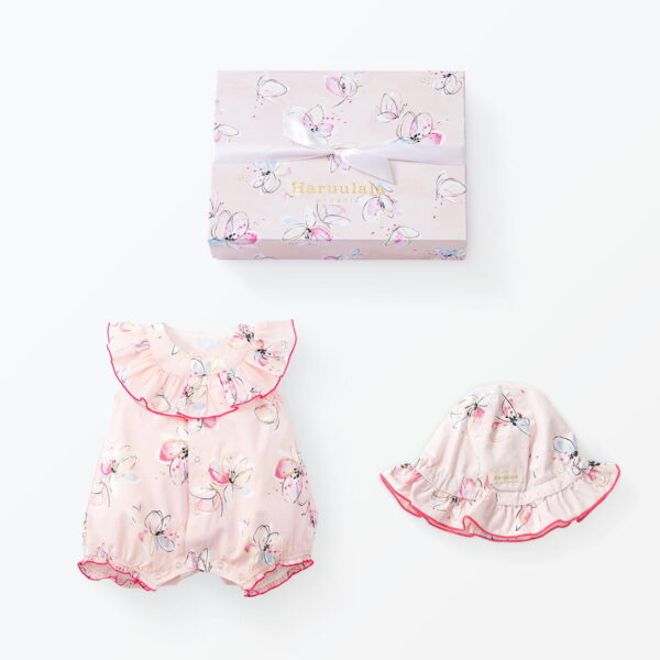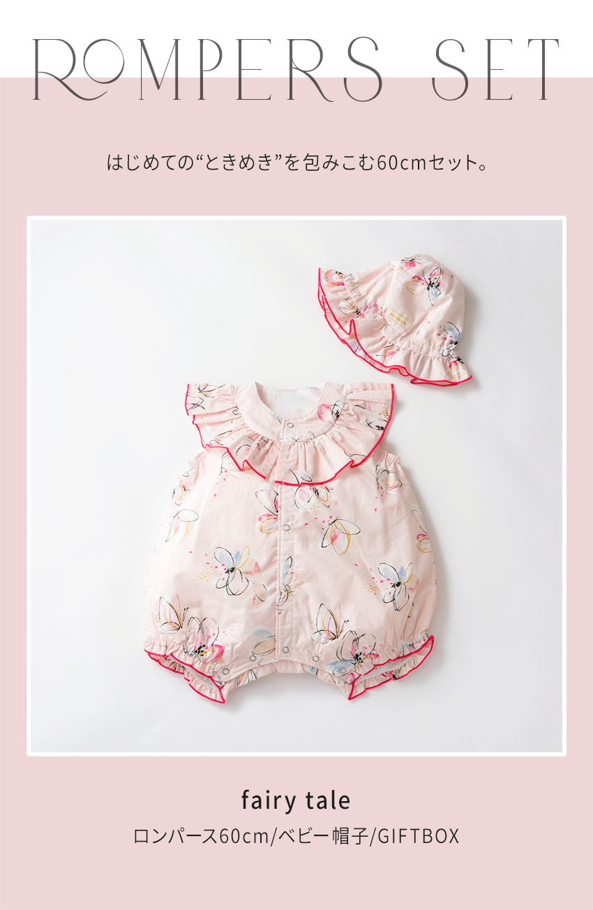 出産祝い2点セット(ラッフルカラーロンパース・ベビー帽子)- fairy tale