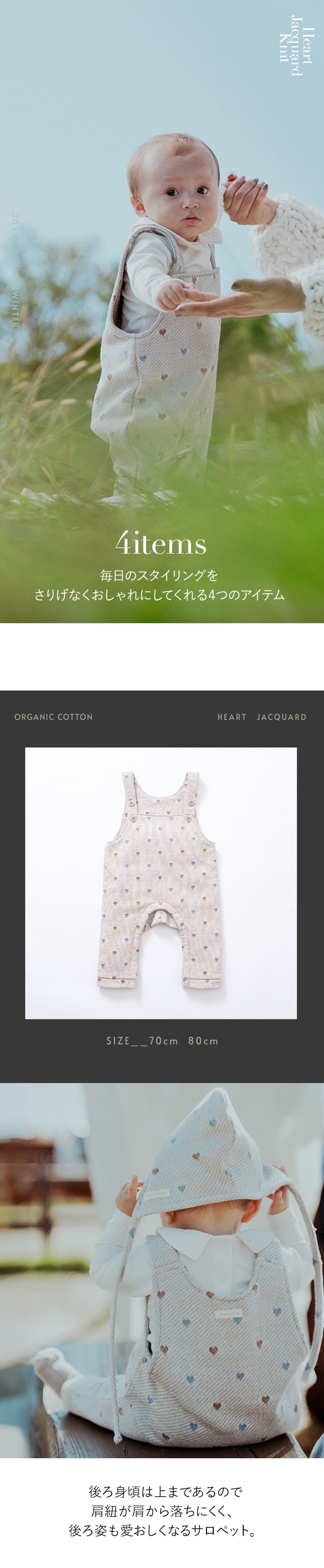 出産祝い2点セット(サロペット・カーディガン)|ハートジャカードニット
