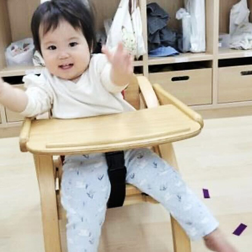 ウエスト部分におひさまマークのタグを付けることで お子様自身が前後が分かりやすくお着換えしやすいデザインにしています。 -
