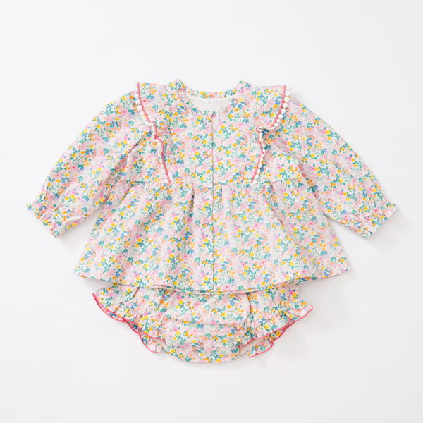 チュニック&ブルマふわっと可愛らしいAラインシルエットのチュニックと、ギャザーたっぷりのブルマ。立ち姿も、座っている姿も愛くるしいベビーチュニック&ブルマのセット。 -
