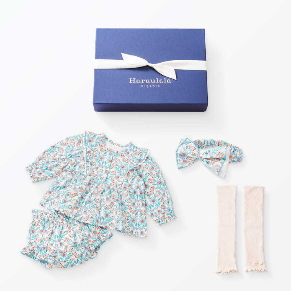出産祝い3点セット(チュニック&ブルマ・ヘアバンド・レッグウォーマー・BOX付き)