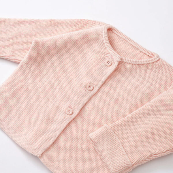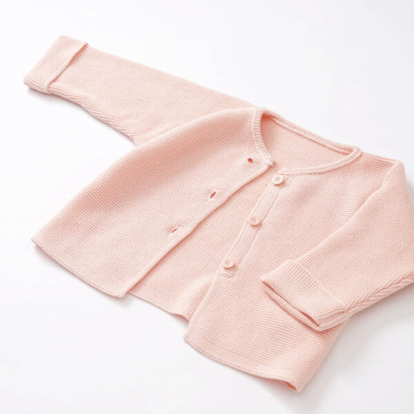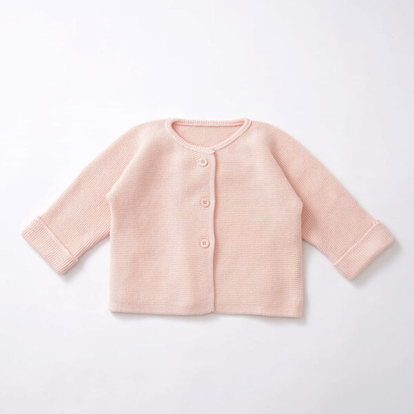 カーディガンさらっとしていてやわらかなオーガニックコットンのパール編みニット。コットン100%の糸なので、チクチクせず 肌触りの良いカーディガンです。 -