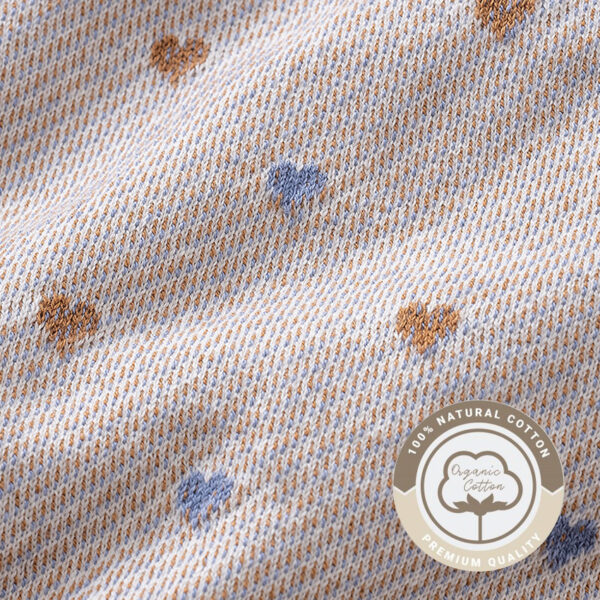稀に生地にオーガニックコットンの綿カス(綿の葉・茎・実などの枯れた部分)や、空気中のほこり、繊維が混ざることがございます。これらはコットンを手摘みしているがゆえに起こるものや、薬剤を使用して不純物を取り除いていないために残るオーガニックコットンの特徴になります。