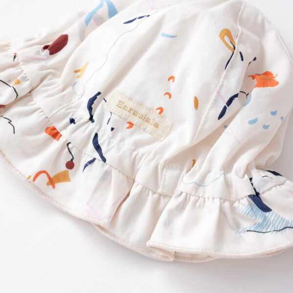 生地によって、プリントの一部に小さな色飛びや、ブレ、かすれなどがあるものがございます。人にも個性があるように、生地にも一つ一つに個性が生まれます。もしこれらのお洋服を見つけたら、そのときは、そのお洋服の個性として、愛着をもって受け入れていただければ幸いです。