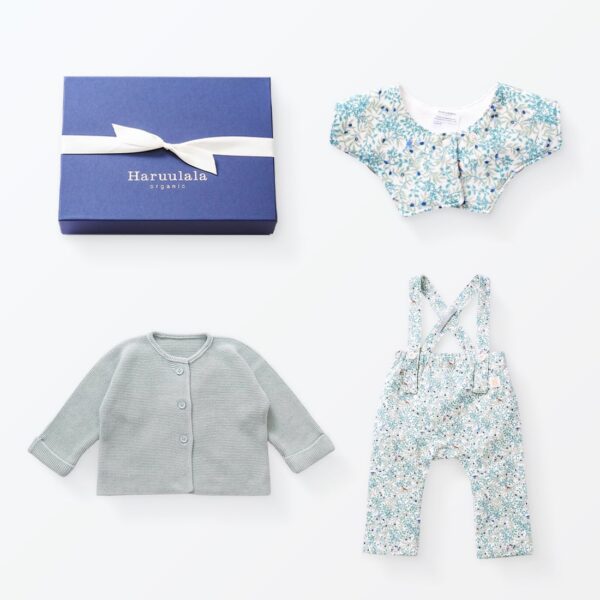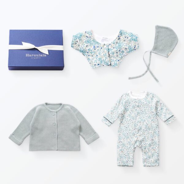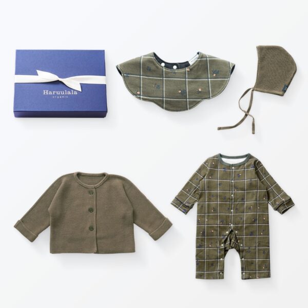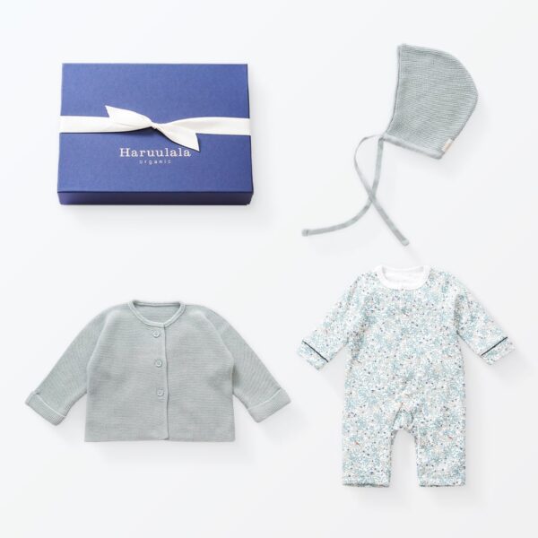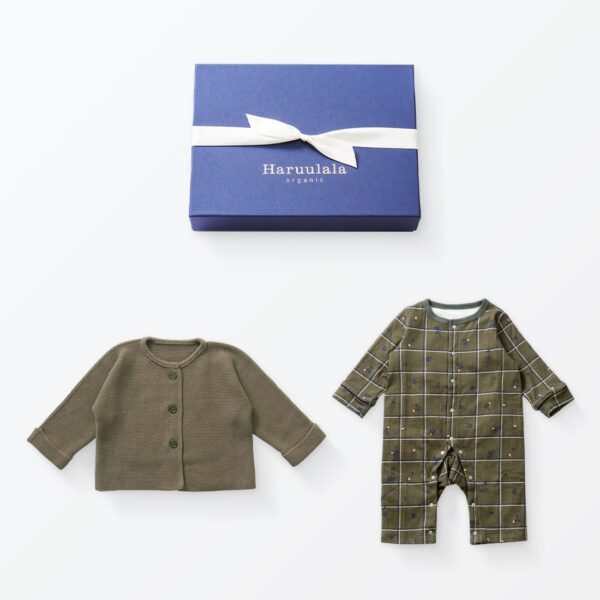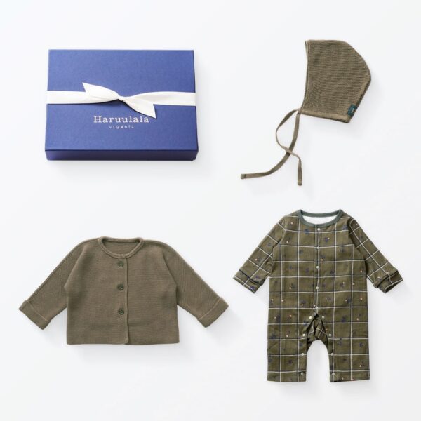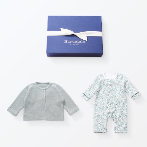 出産祝いには、オーガニックコットンのベビー服ギフトセットを。名入れ刺繍とプレゼントとお揃い柄の豪華なギフトボックスラッピングで特別な贈り物に。