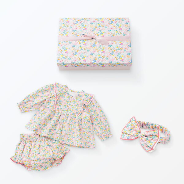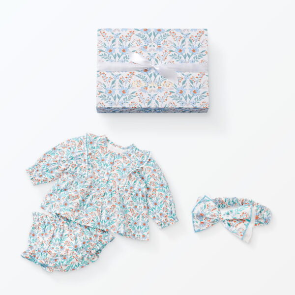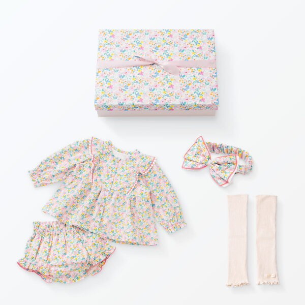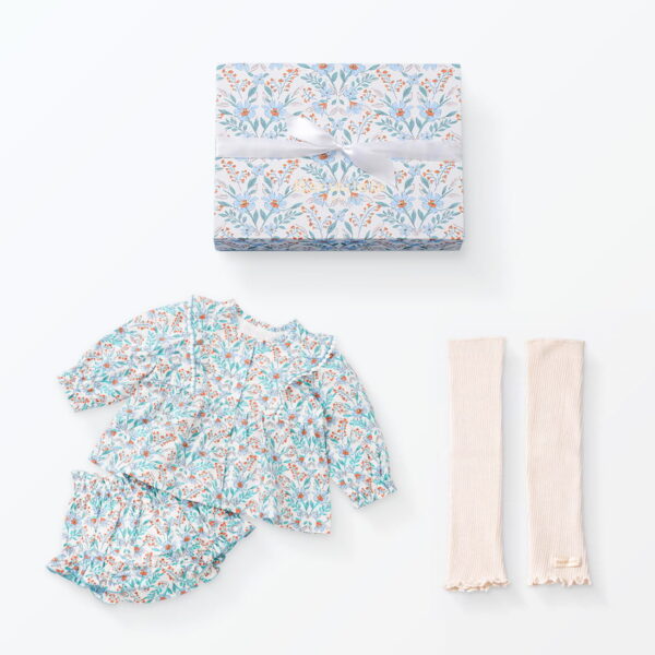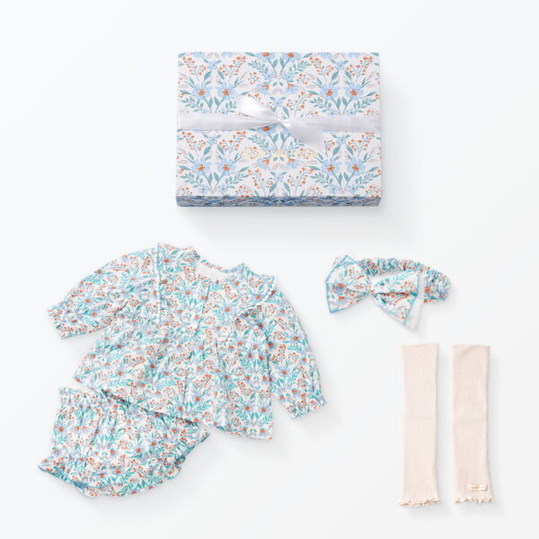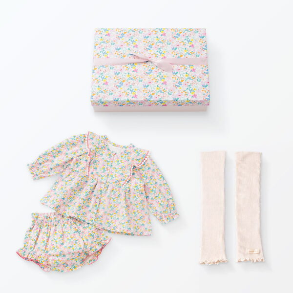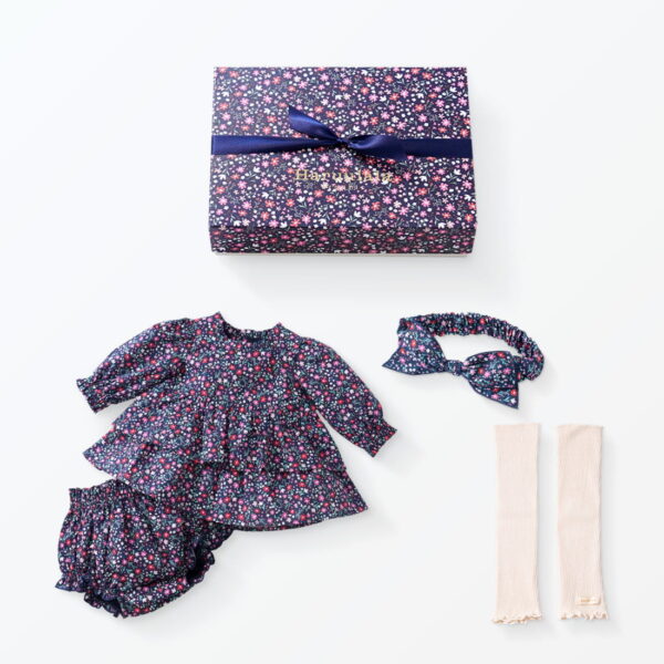 出産祝い3点セット(チュニック&ブルマ・ヘアバンド・レッグウォーマー・BOX付き)