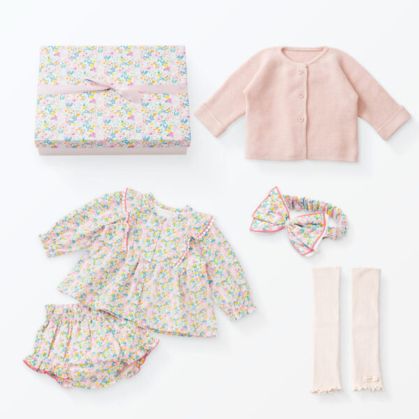出産祝い4点セット【 チュニック&ブルマ・カーディガン・ヘアバンド・レッグウォーマー】GIFT BOX付