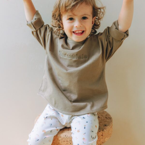 ピタっとし過ぎないシルエットで、お子様が自分でもお着替えしやすく、履き心地の良いサイズ感にしています。 -