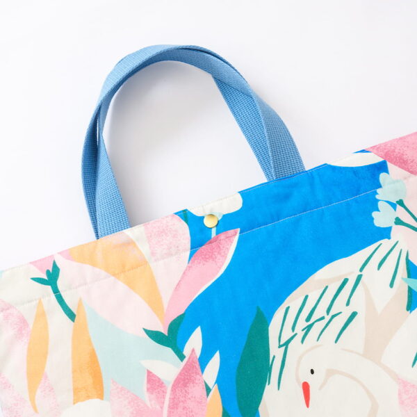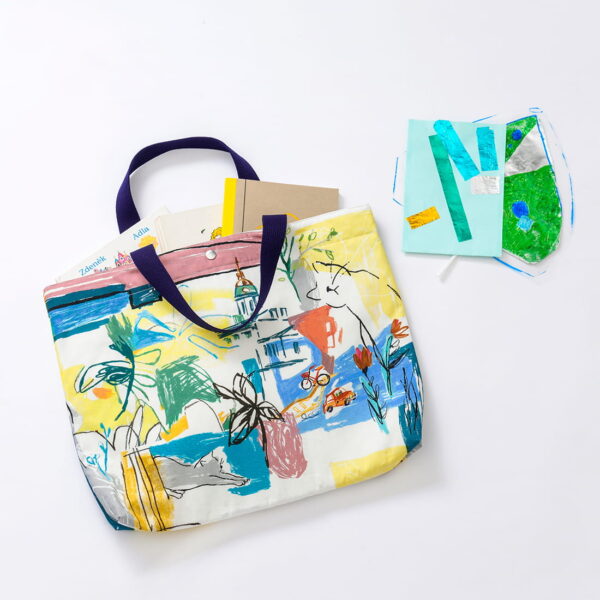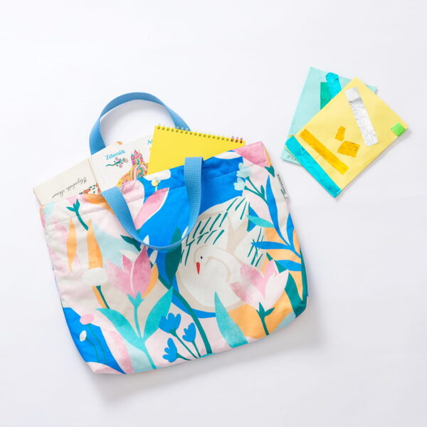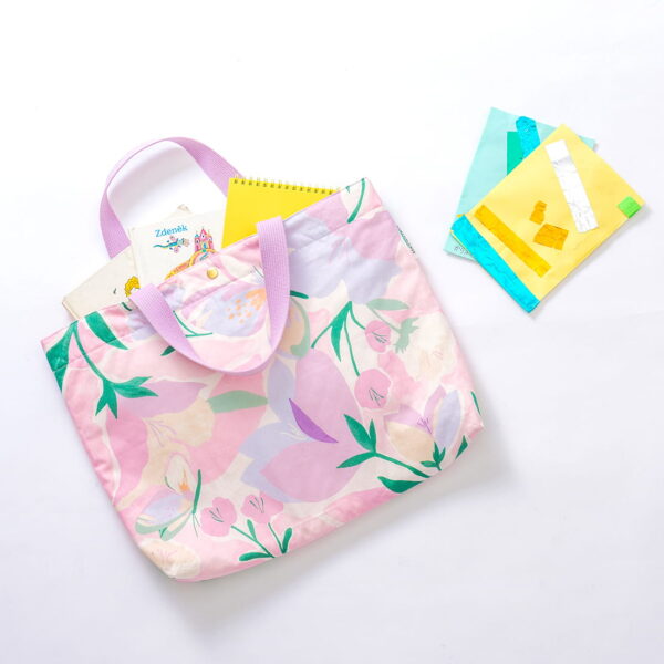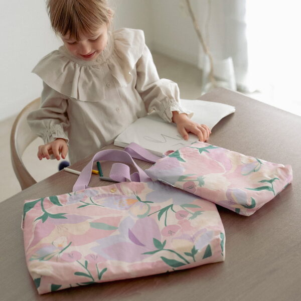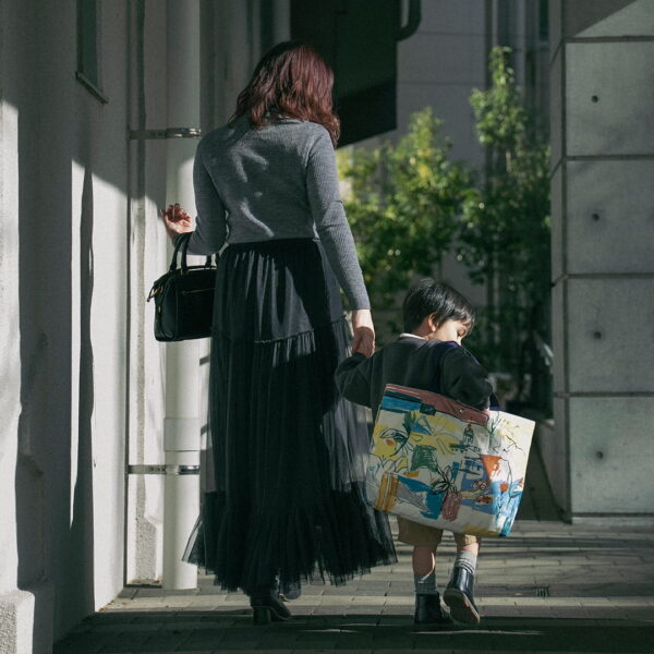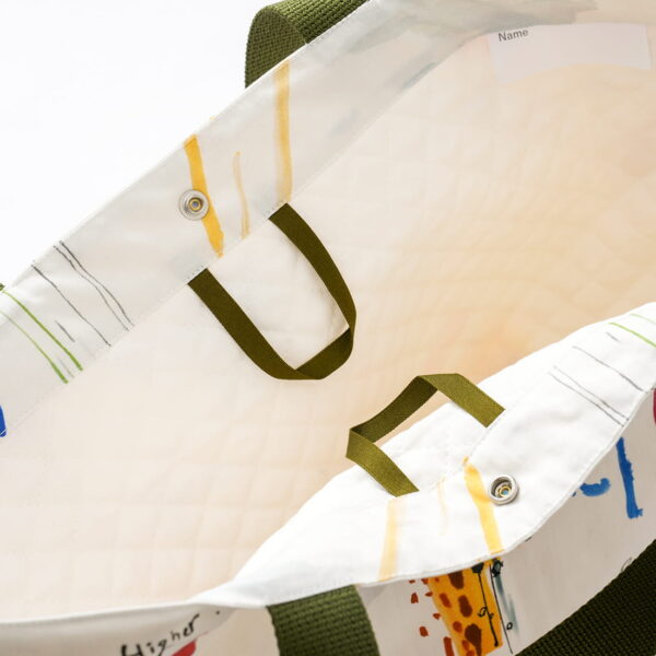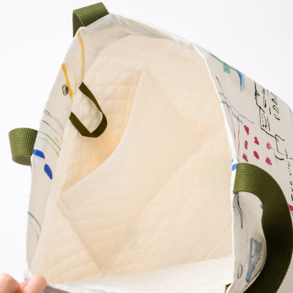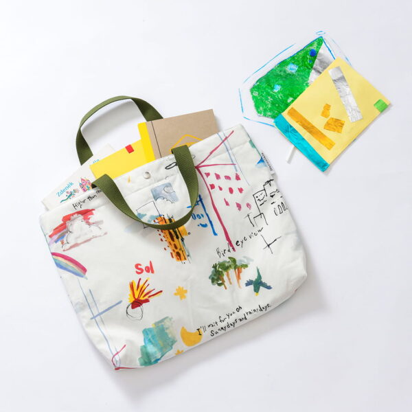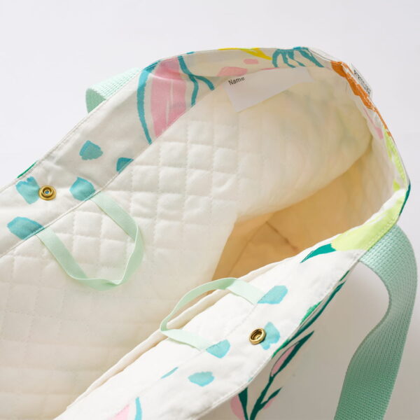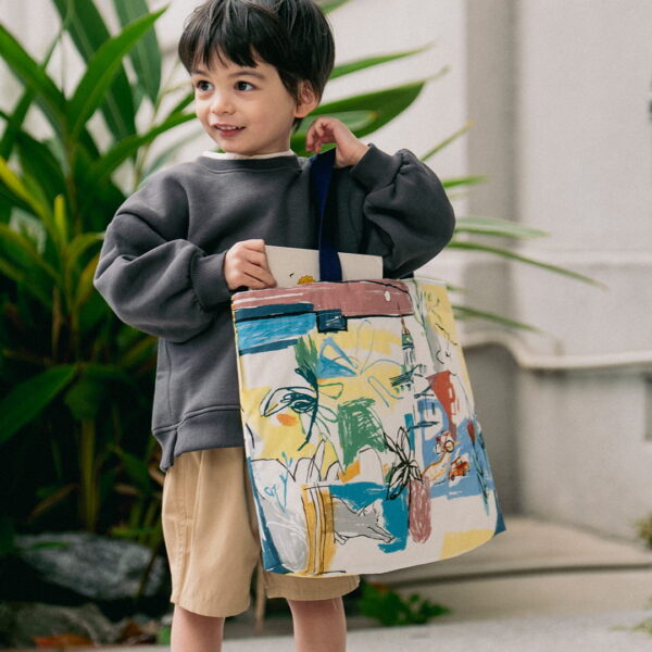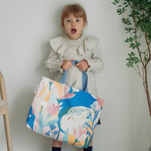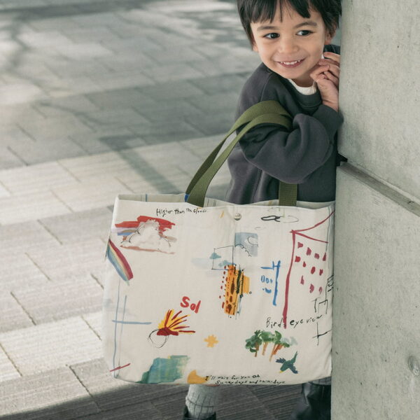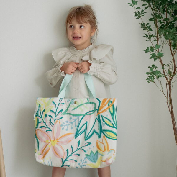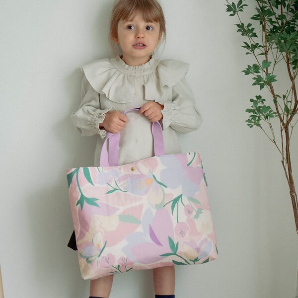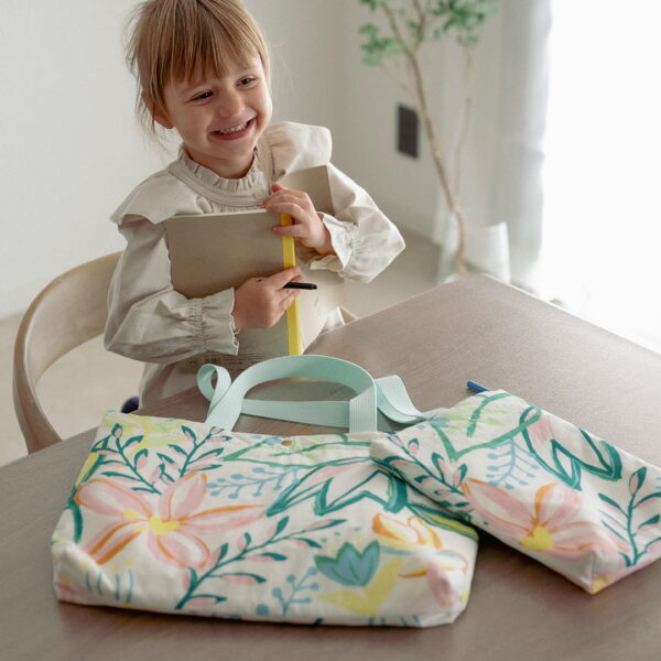 32cm×45 cmで、大きな絵本やスケッチブックも出し入れスムーズ。持ち手はお子さまの手でも持ちやすく柔らかくて丈夫なテープを使用。 通園通学のお道具袋としても、習い事のレッスンバッグとしても大活躍のアイテムです。