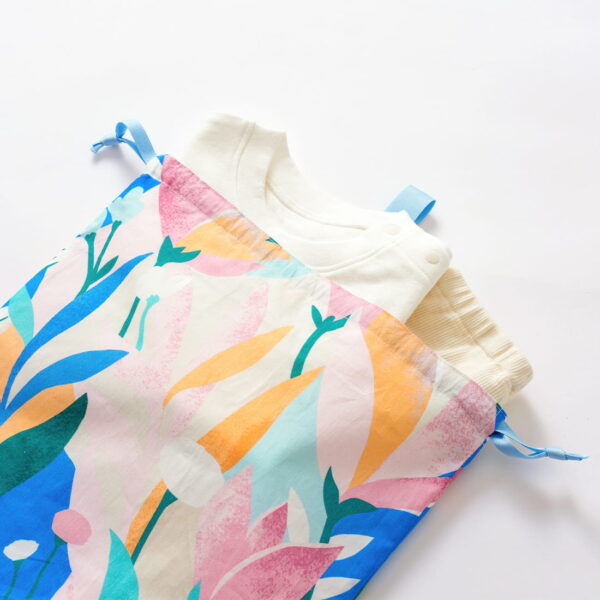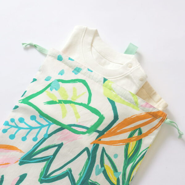 稀に生地にオーガニックコットンの綿カス(綿の葉・茎・実などの枯れた部分)や、空気中のほこり、繊維が混ざることがございます。これらはコットンを手摘みしているがゆえに起こるものや、薬剤を使用して不純物を取り除いていないために残るオーガニックコットンの特徴になります。