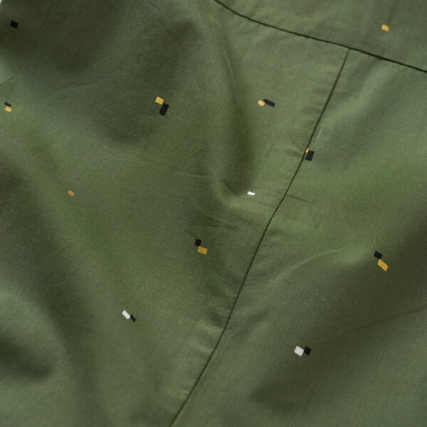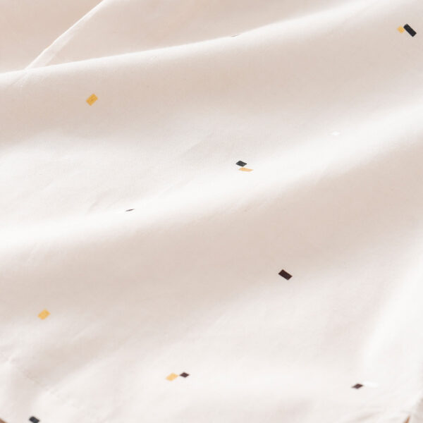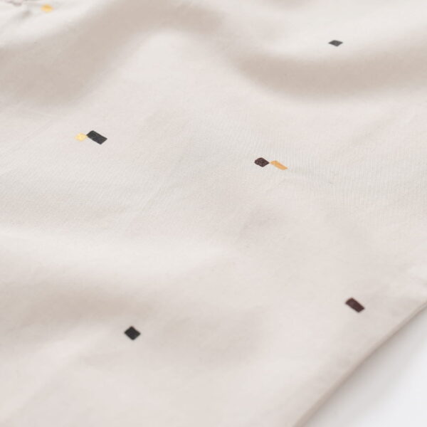 稀に生地にオーガニックコットンの綿カス(綿の葉・茎・実などの枯れた部分)や、空気中のほこり、繊維が混ざることがございます。これらはコットンを手摘みしているがゆえに起こるものや、薬剤を使用して不純物を取り除いていないために残るオーガニックコットンの特徴になります。