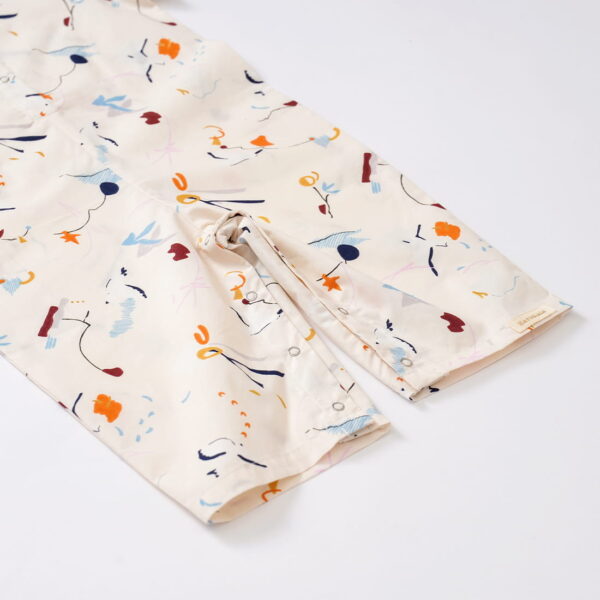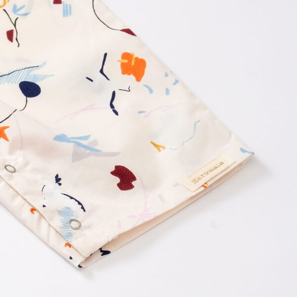 一部の商品で使用しているラメプリントは、永久的なものではございません。着用や洗濯により多少脱落することがございますが、万が一口に入ってしまっても、厳格な検査期間で合格した安全なものを使用しておりますので、ご安心ください。