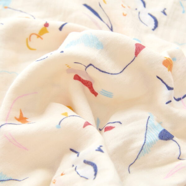 生地によって、生地を織っている工程で稀に1,2本多く糸をすくい、少し糸が太くなってしまった箇所がございます。また生地によってプリントの一部に小さな色飛びや、ブレ、かすれなどがあることがございます。