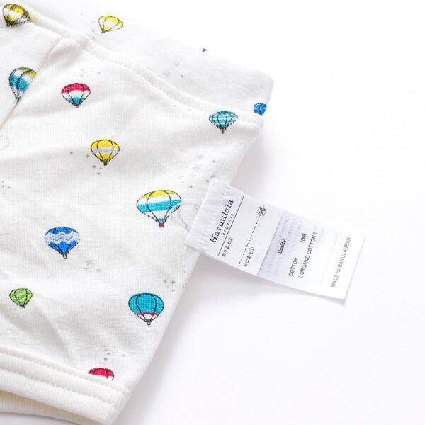 一部の商品で使用しているラメプリントは、永久的なものではございません。着用や洗濯により多少脱落することがございますが、万が一口に入ってしまっても、厳格な検査期間で合格した安全なものを使用しておりますので、ご安心ください。