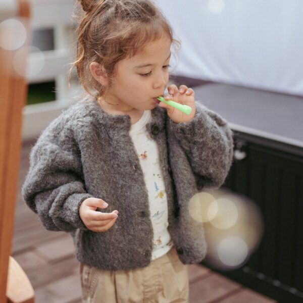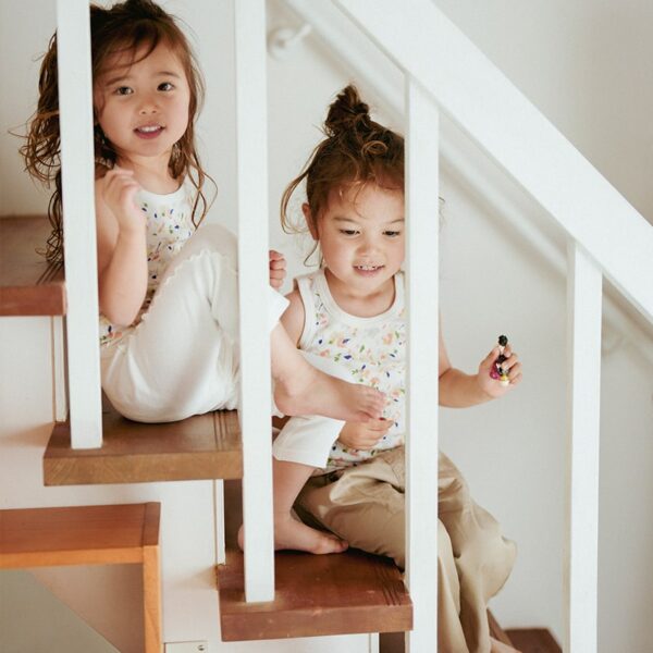 一部の商品で使用しているラメプリントは、永久的なものではございません。着用や洗濯により多少脱落することがございますが、万が一口に入ってしまっても、厳格な検査期間で合格した安全なものを使用しておりますので、ご安心ください。