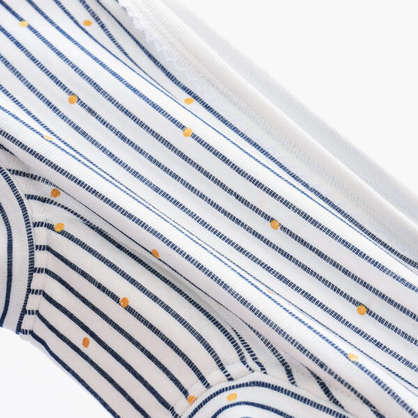 稀に生地にオーガニックコットンの綿カス(綿の葉・茎・実などの枯れた部分)や、空気中のほこり、繊維が混ざることがございます。これらはコットンを手摘みしているがゆえに起こるものや、薬剤を使用して不純物を取り除いていないために残るオーガニックコットンの特徴になります。
